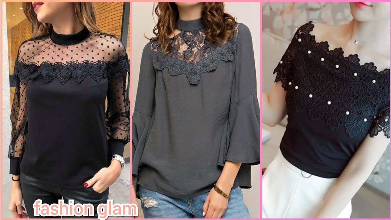 beautiful casual lace applique top and blouse styles for women's